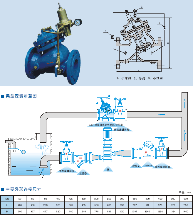 AX742X隔膜式安全泄壓/持壓閥是安裝在高層建筑、消防給水系統以及其它給水系統的管道上,當給水管道中 壓力超過泄壓閥設定壓力時,泄壓閥自動開啟快速泄壓,保護管線的安全,也可作持壓閥用,保障主閥上游的供水壓力。能準確保持不邊的安全設定壓力,泄壓閥迅速打開,及時泄壓。關閉平穩可靠,消除壓力余波。